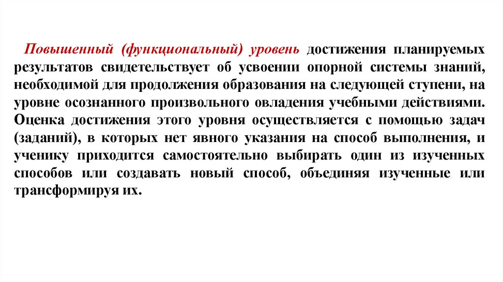 Повышенный (функциональный) уровень достижения планируемыхрезультатов свидетельствует об усвоении опорной системы знаний,