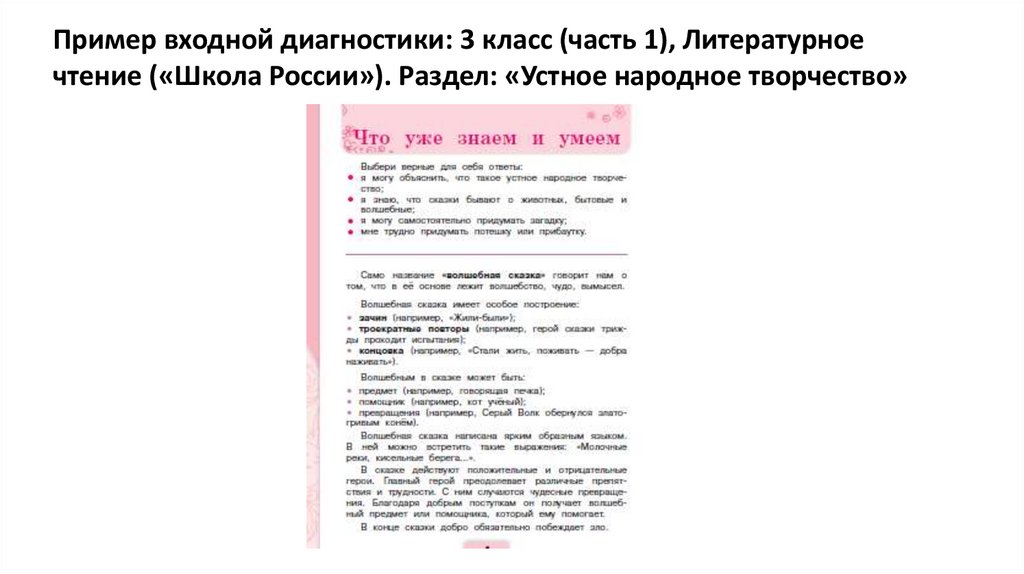 Пример входной диагностики: 3 класс (часть 1), Литературноечтение («Школа России»). Раздел: «Устное народное творчество»