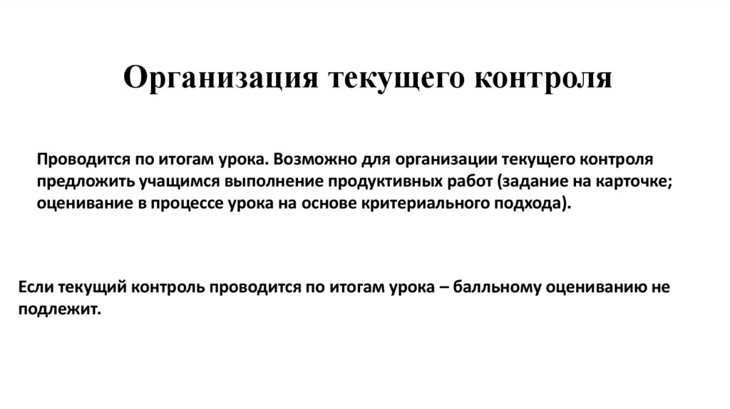 Если текущий контроль проводится по итогам урока – балльному оцениванию не