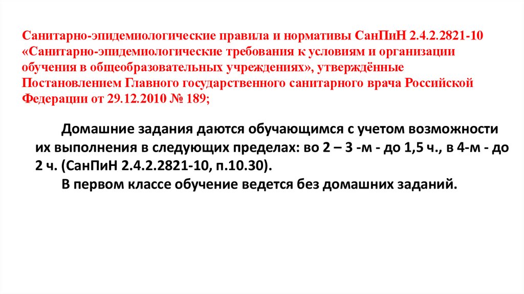 Санитарно-эпидемиологические правила и нормативы СанПиН 2.4.2.2821-10«Санитарно-эпидемиологические требования к условиям и организации