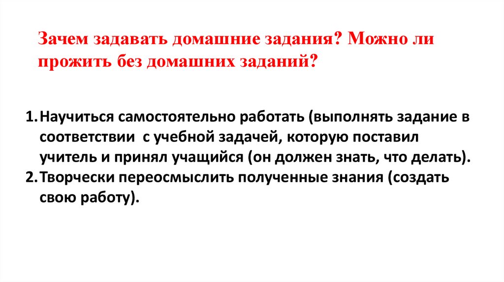 Зачем задавать домашние задания? Можно липрожить без домашних заданий?