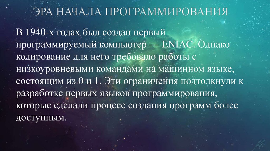 Эра начала программирования.