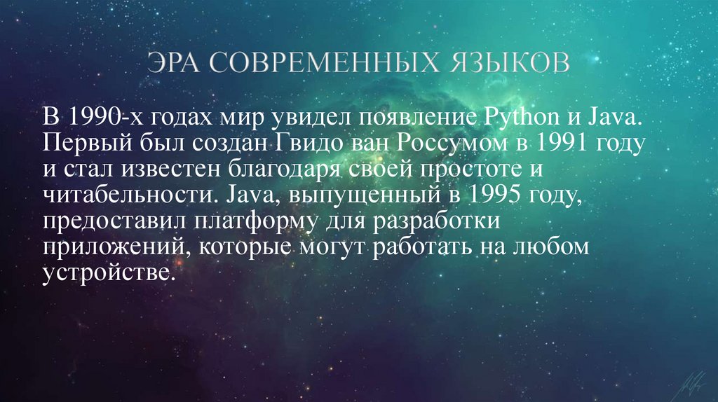 В 1990-х годах мир увидел появление Python и Java.Первый был создан Гвидо ван Россумом в 1991 году