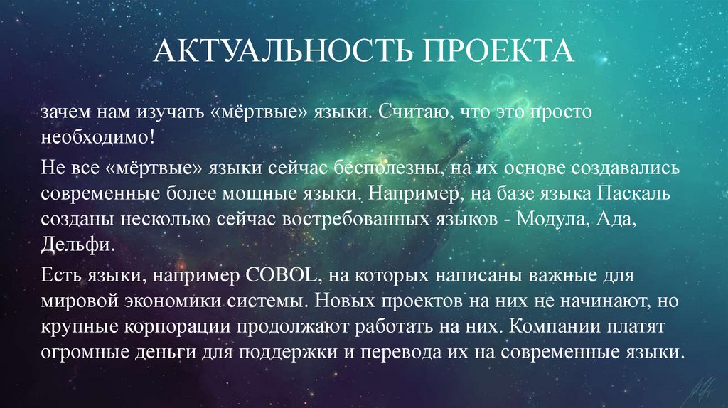 АКТУАЛЬНОСТЬ ПРОЕКТАзачем нам изучать «мёртвые» языки. Считаю, что это просто