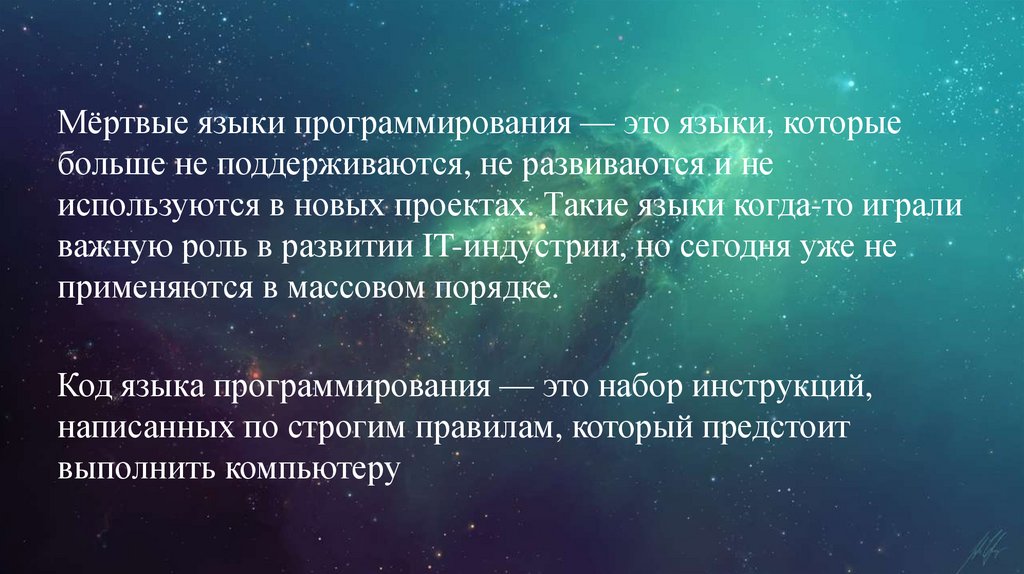 Мёртвые языки программирования — это языки, которыебольше не поддерживаются, не развиваются и не