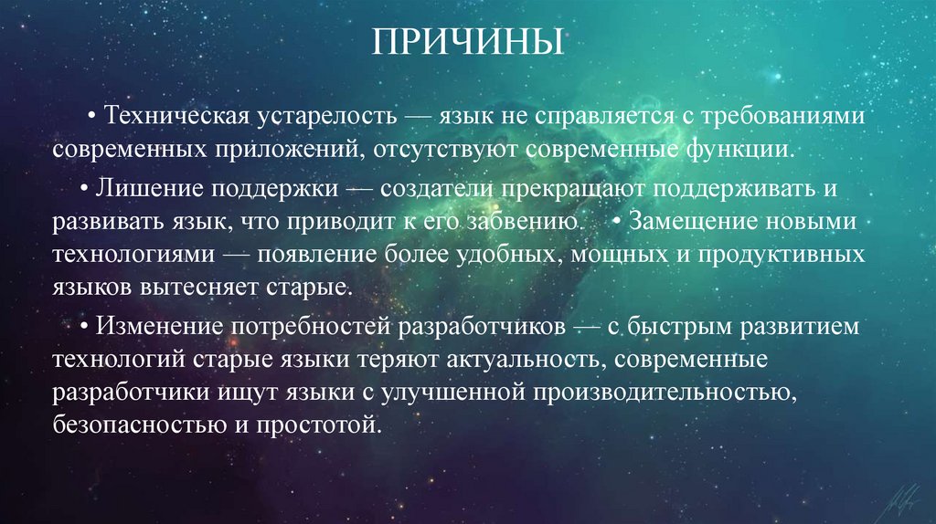 ПРИЧИНЫ• Техническая устарелость — язык не справляется с требованиями
