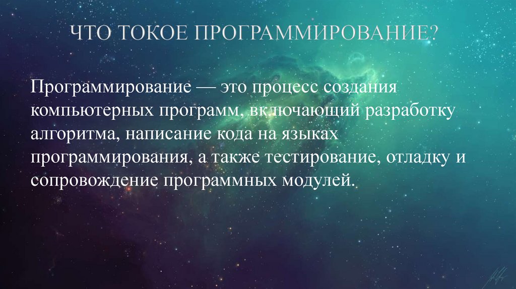 Программирование — это процесс созданиякомпьютерных программ, включающий разработку