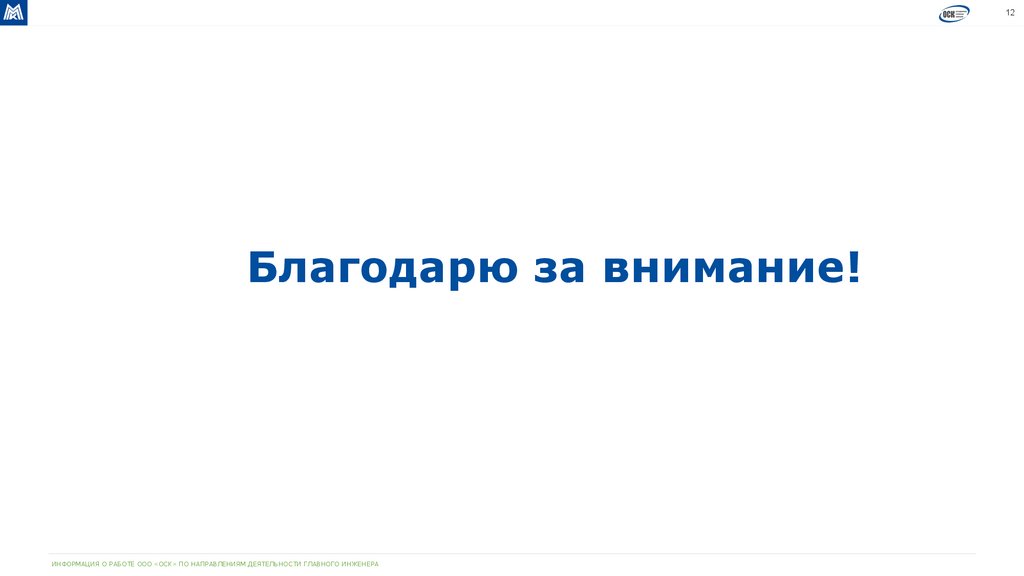 ИНФОРМАЦИЯ О РАБОТЕ ООО «ОСК» ПО НАПРАВЛЕНИЯМ ДЕЯТЕЛЬНОСТИ ГЛАВНОГО ИНЖЕНЕРА