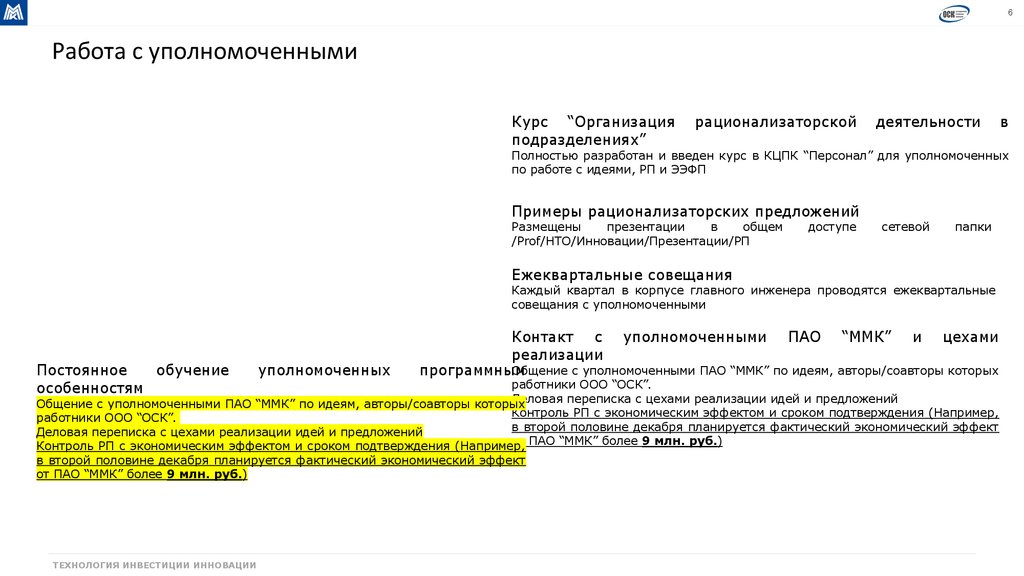 Общение с уполномоченными ПАО “ММК” по идеям, авторы/соавторы которых