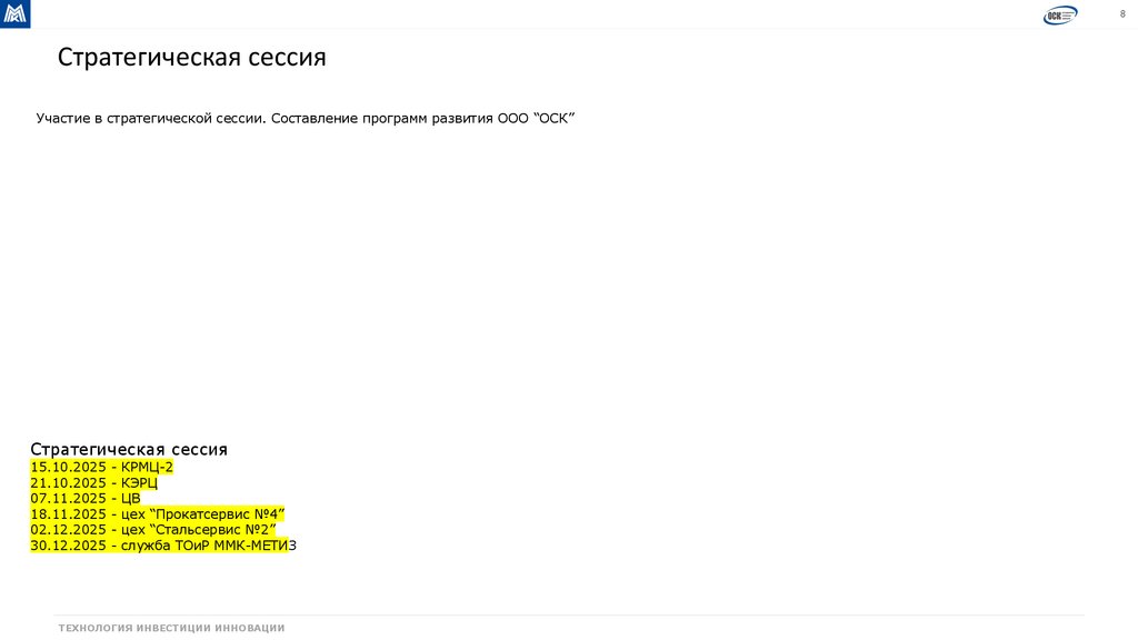 Участие в стратегической сессии. Составление программ развития ООО “ОСК”
