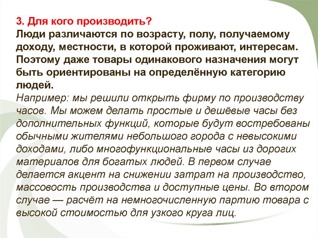 3. Для кого производить?Люди различаются по возрасту, полу, получаемому