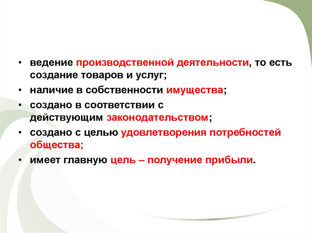 • ведение производственной деятельности, то естьсоздание товаров и услуг;