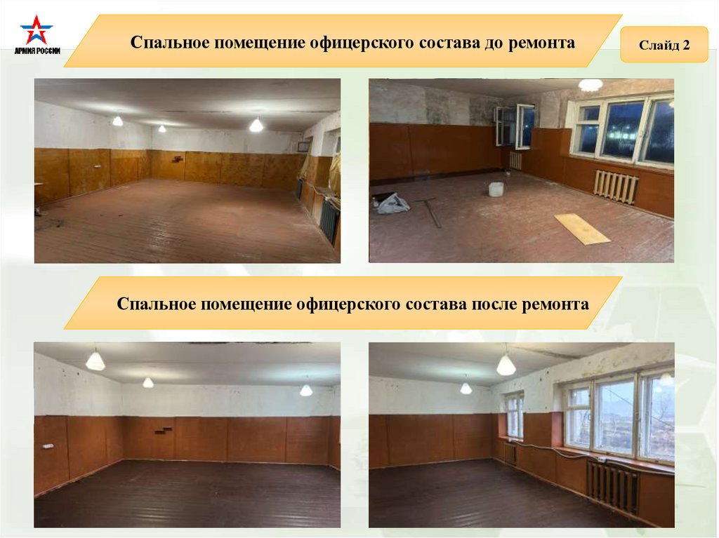 Спальное помещение офицерского состава до ремонтаСпальное помещение офицерского состава после ремонта