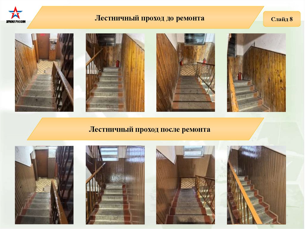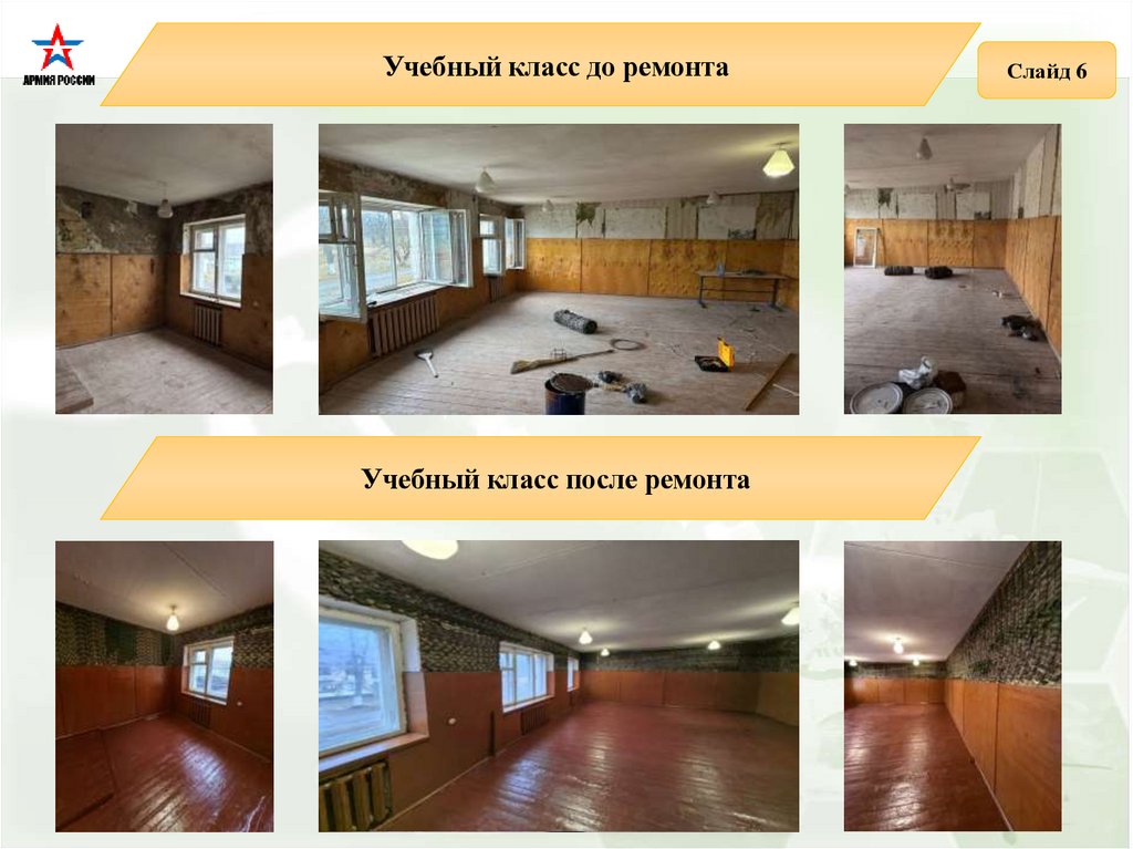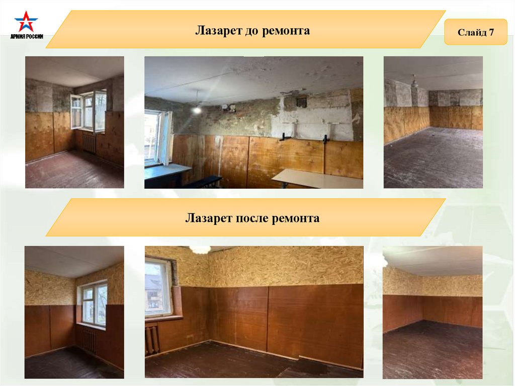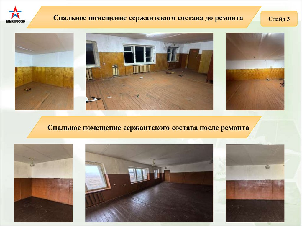 Спальное помещение сержантского состава до ремонтаСпальное помещение сержантского состава после ремонта