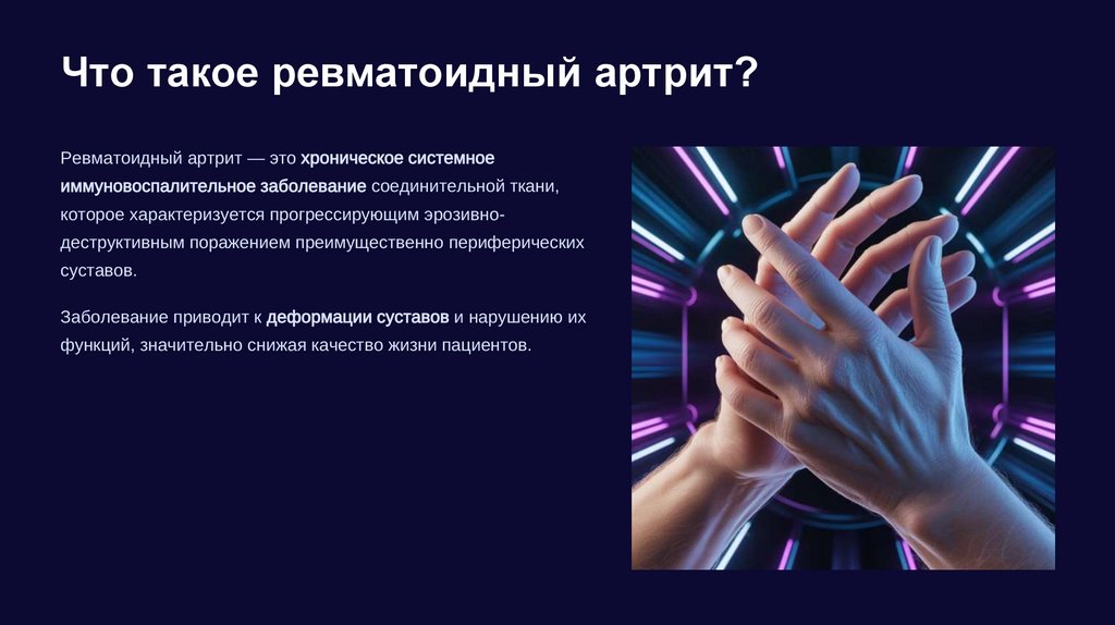 Что такое ревматоидный артрит?Ревматоидный артрит — это хроническое системное