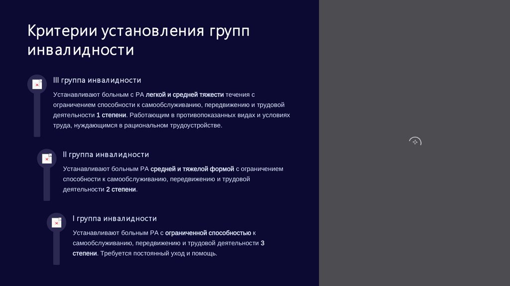 Устанавливают больным РА средней и тяжелой формой с ограничением