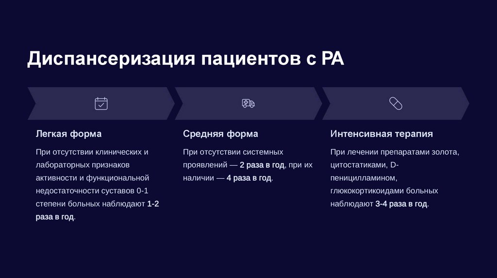 Устанавливают больным с РА легкой и средней тяжести течения с