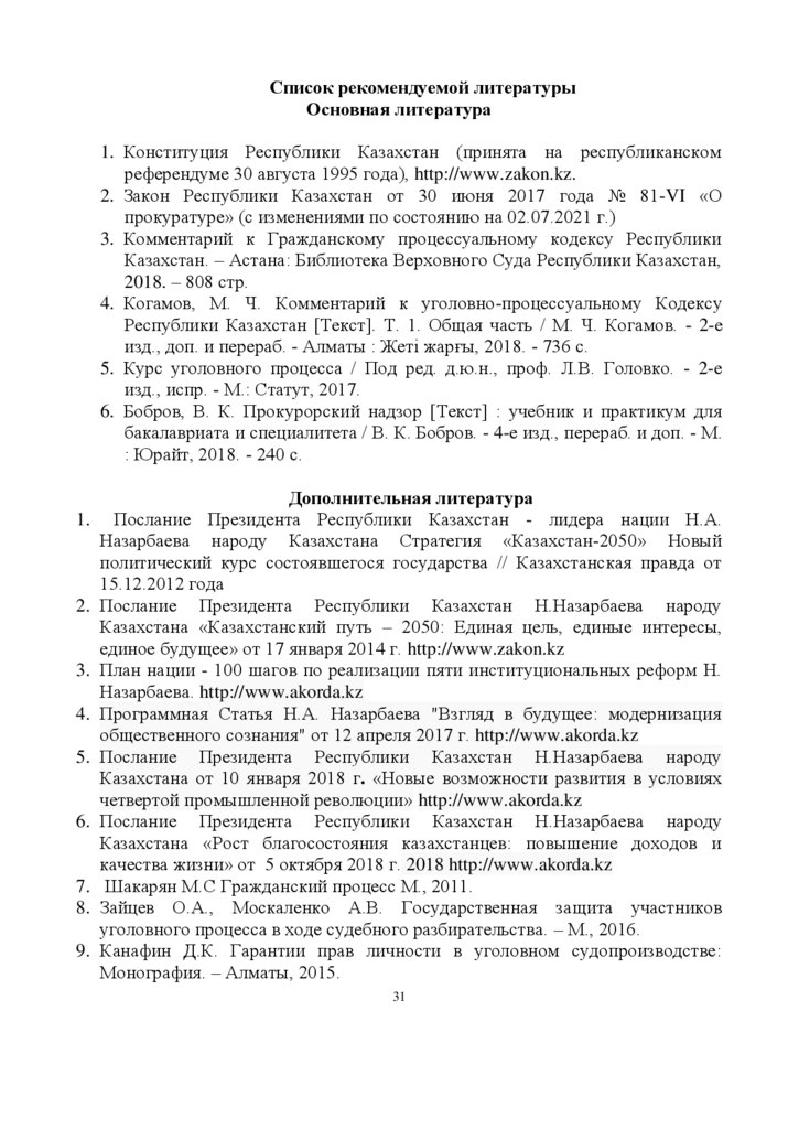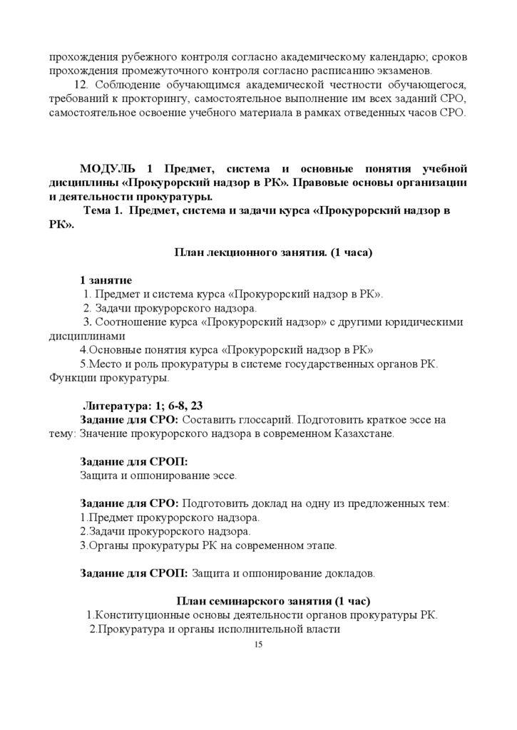 Дисциплина: "Прокурорский надзор в Республике Казахстан"