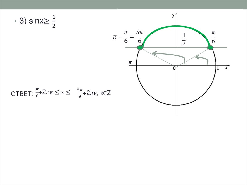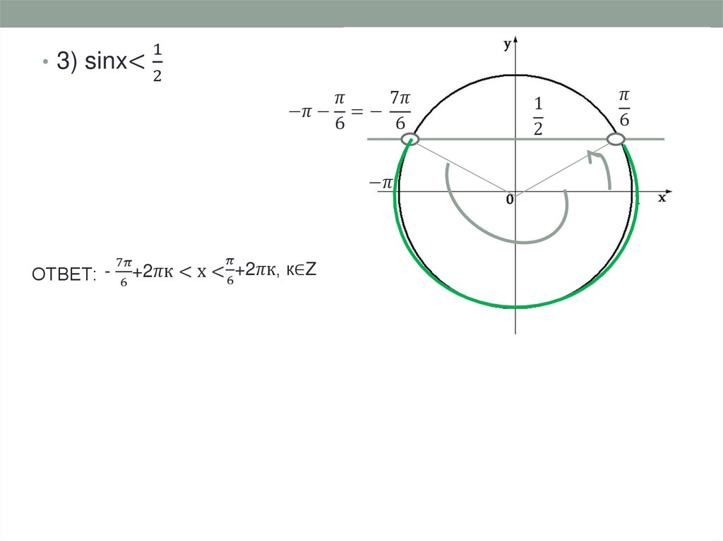 Неравенство вида sinx>a, sinx<a, sinx≥a, sinx≤a