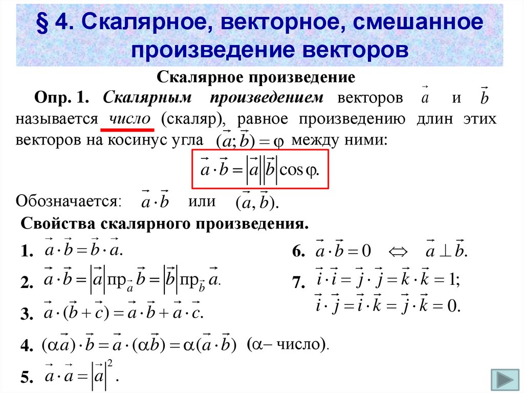 § 4. Скалярное, векторное, смешанноепроизведение векторов
