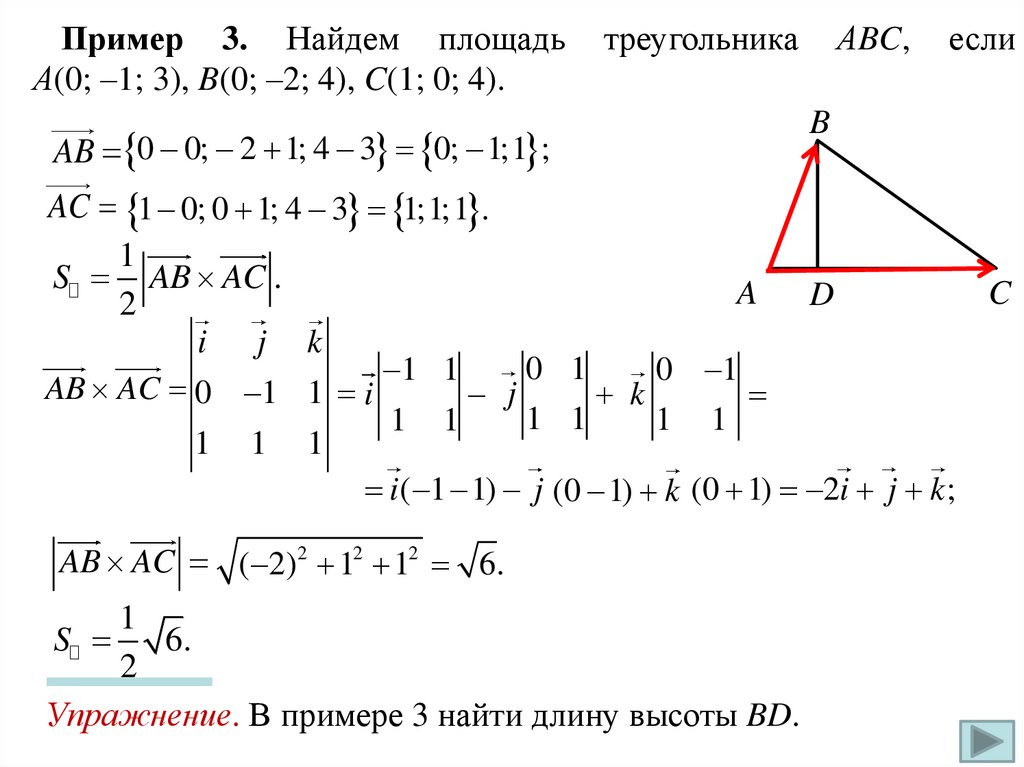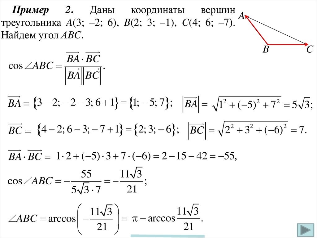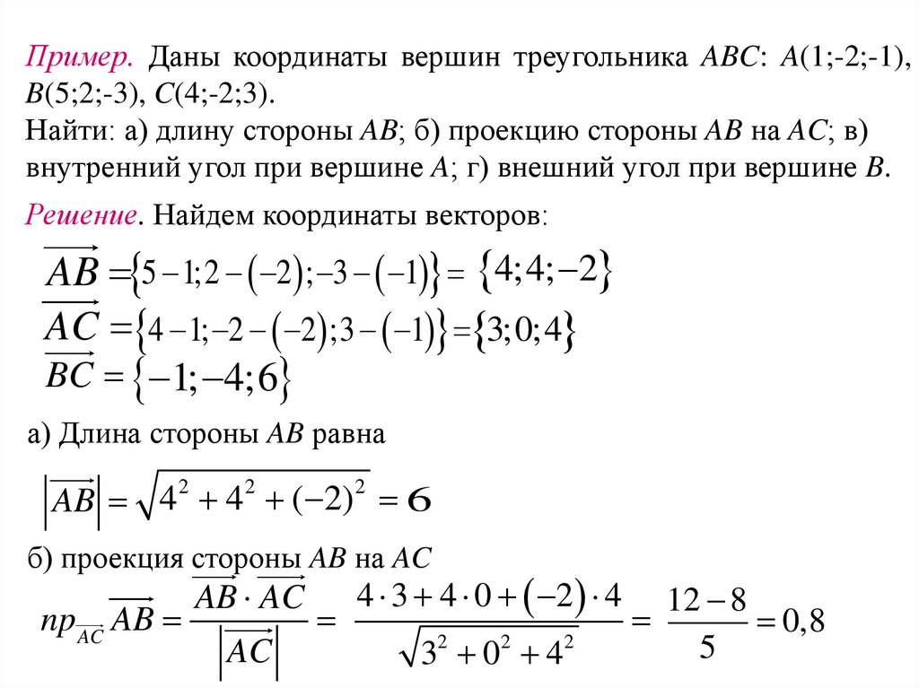 Пример. Даны координаты вершин треугольника ABC: A(1;-2;-1),B(5;2;-3), C(4;-2;3).