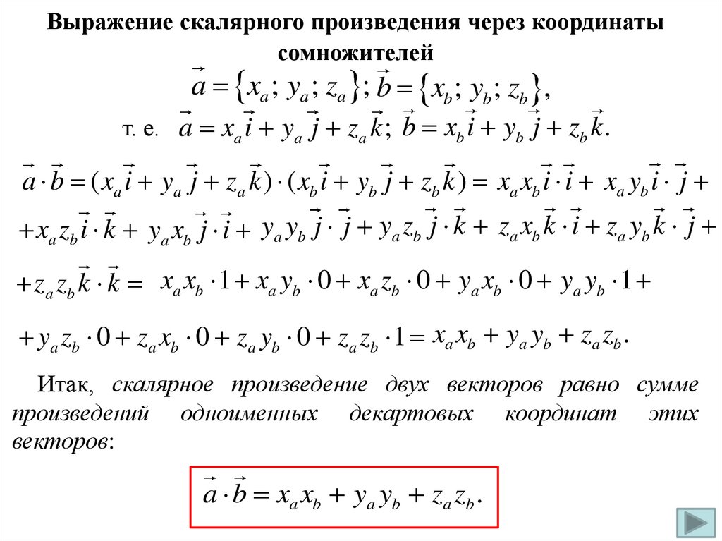 т. е. a xa i ya j za k ; b xb i yb j zb k .