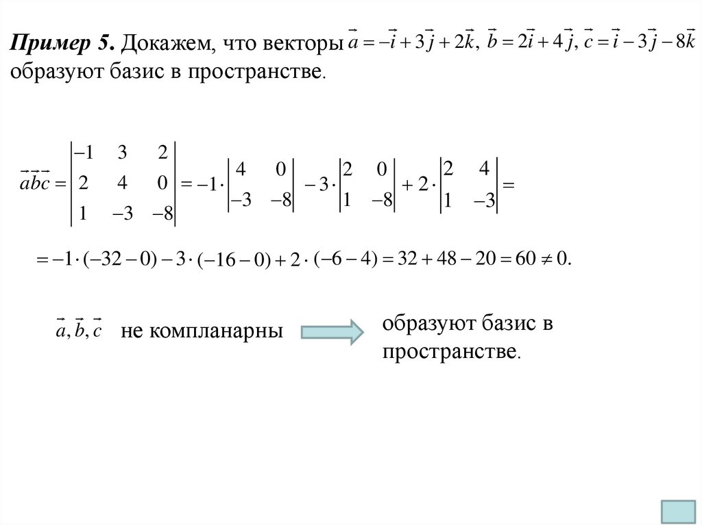 Пример 5. Докажем, что векторы a i 3 j 2k , b 2i 4 j, c i 3 j 8kобразуют базис в пространстве.