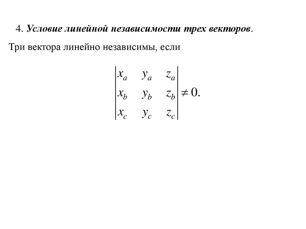 4. Условие линейной независимости трех векторов.Три вектора линейно независимы, если