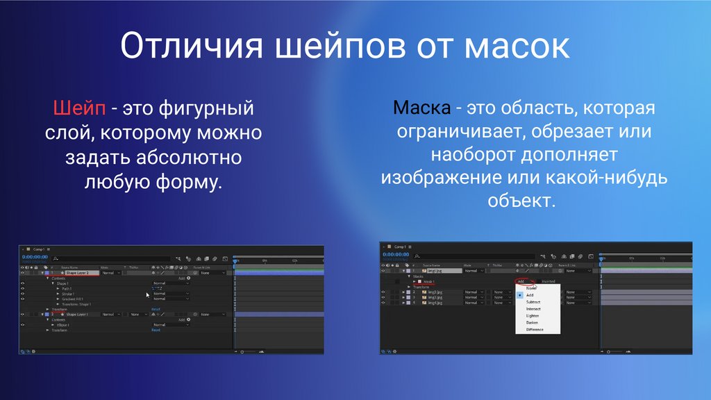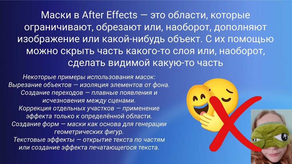Маски в After Effects — это области, которыеограничивают, обрезают или, наоборот, дополняют