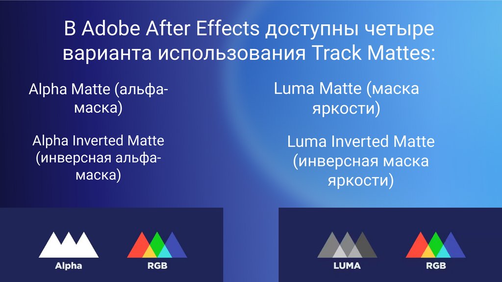В Adobe After Effects доступны четыреварианта использования Track Mattes: