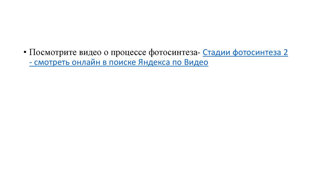 • Посмотрите видео о процессе фотосинтеза- Стадии фотосинтеза 2- смотреть онлайн в поиске Яндекса по Видео
