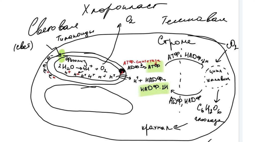4. За счёт (е-) хлорофилла и перекачки протонов через мембрану тилакоида