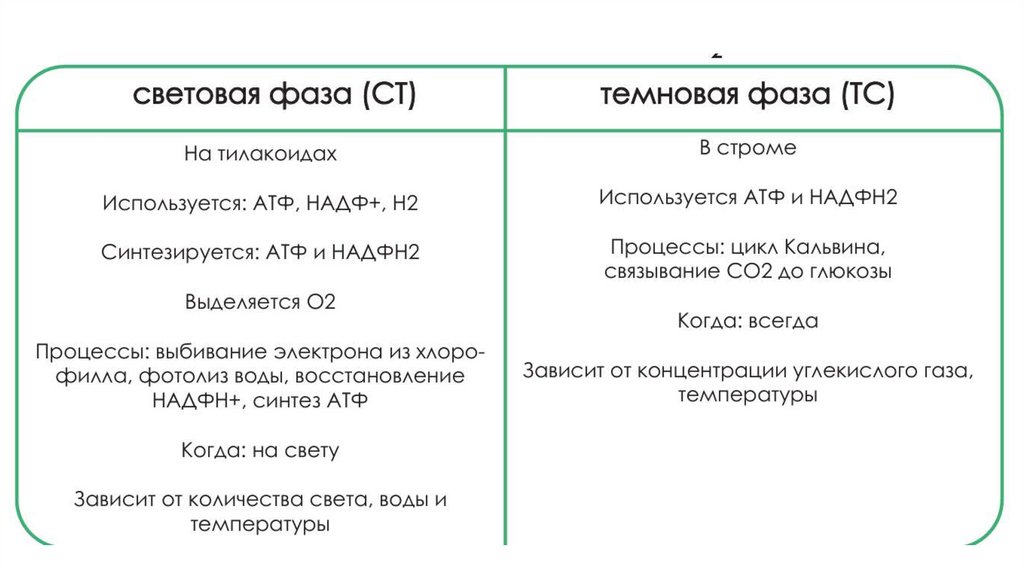 • Темновой ( светонезависимой) – происходит и на свету, и в темноте