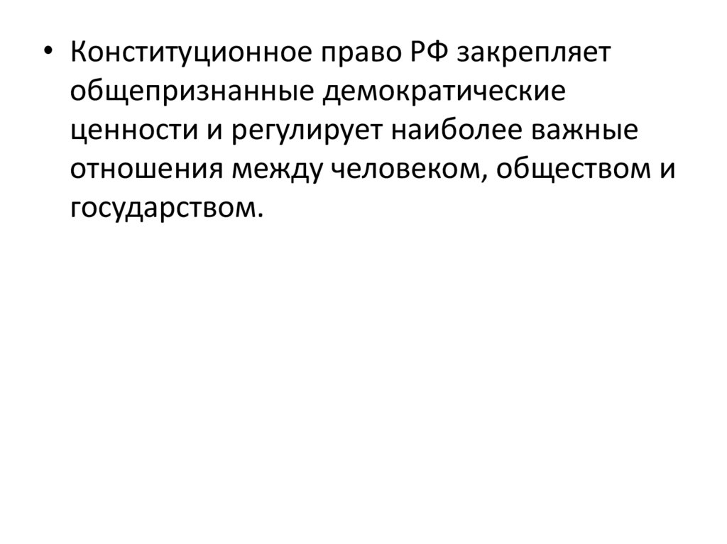 • Конституционное право РФ закрепляетобщепризнанные демократические