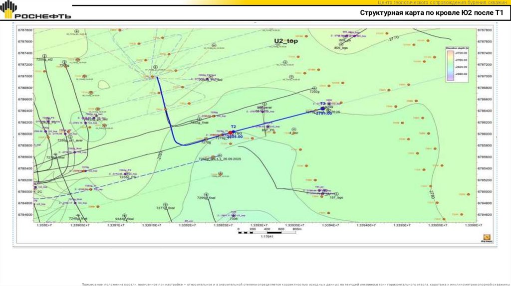 Центр геологического сопровождения бурения скважинСтруктурная карта по кровле Ю2 после Т1