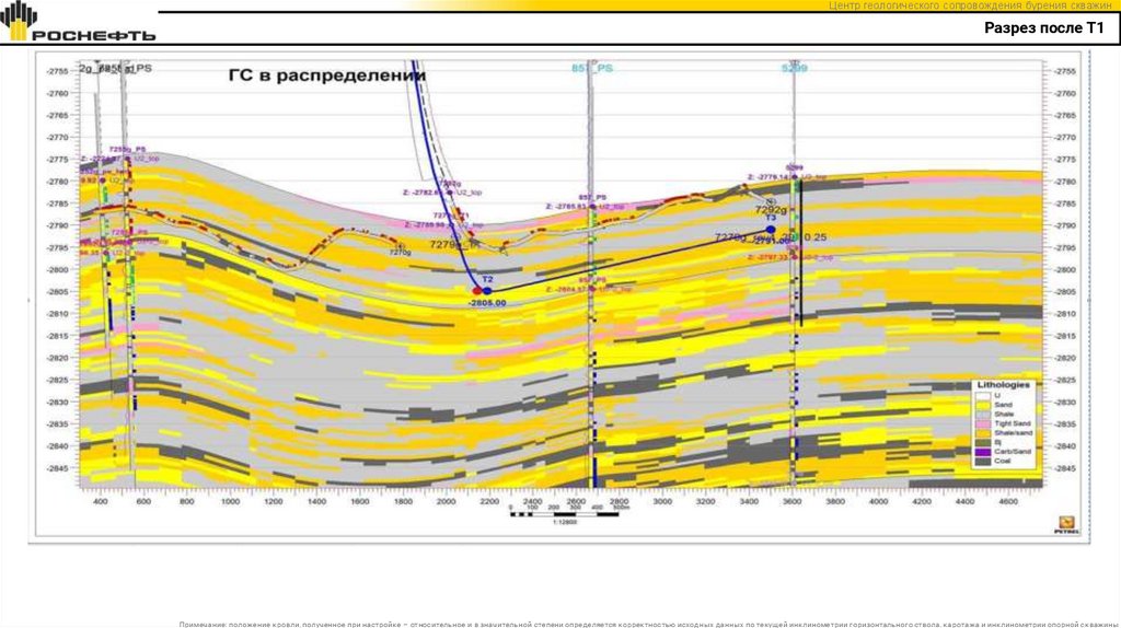Центр геологического сопровождения бурения скважинРазрез после Т1