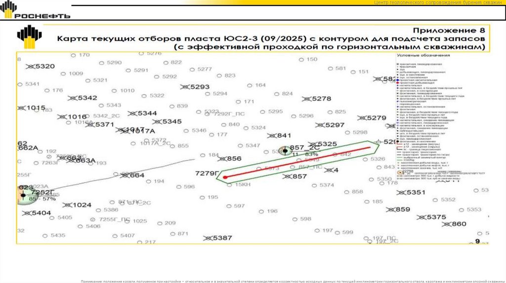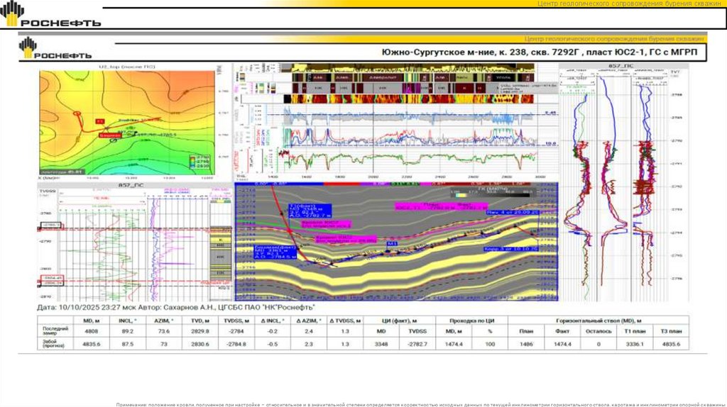 Центр геологического сопровождения бурения скважинПримечание: положение кровли, полученное при настройке – относительное и в значительной степени определяется корректностью исходных данных по текущей инклинометрии горизонтального ствола, каротажа и инклинометрии опорной скважины
