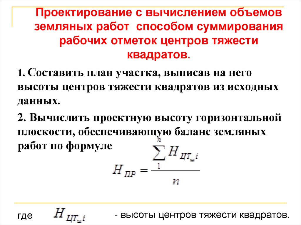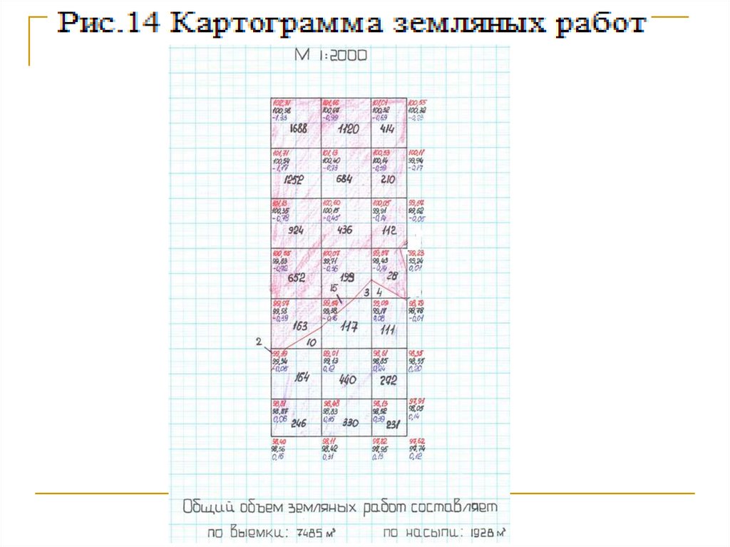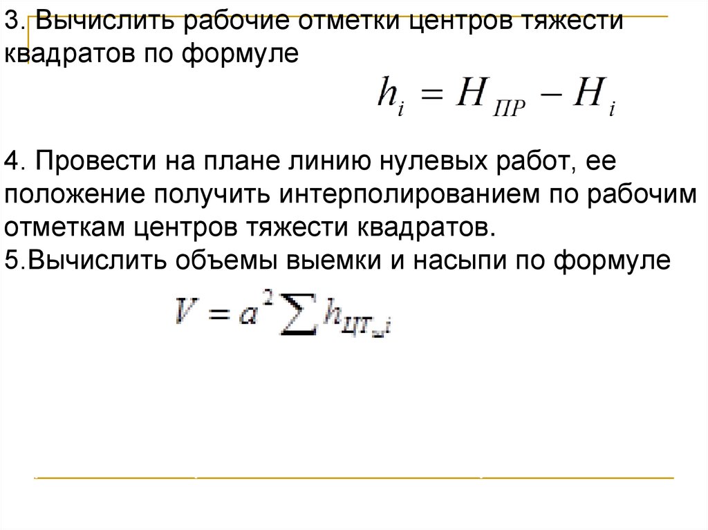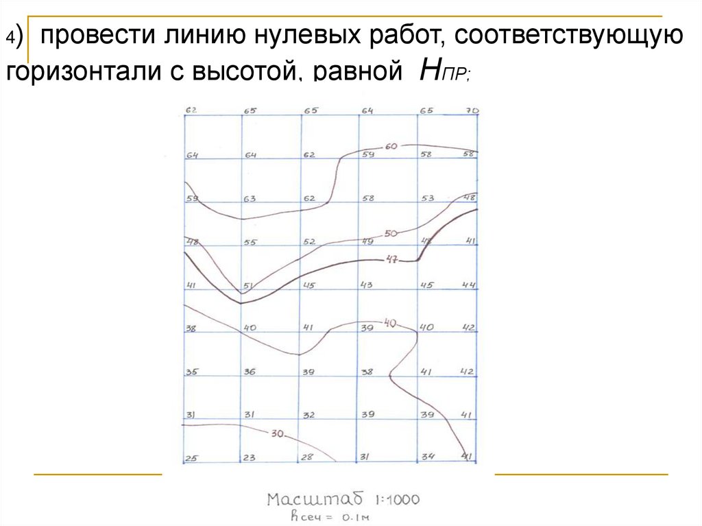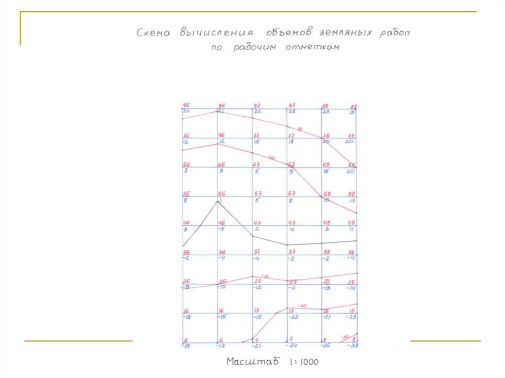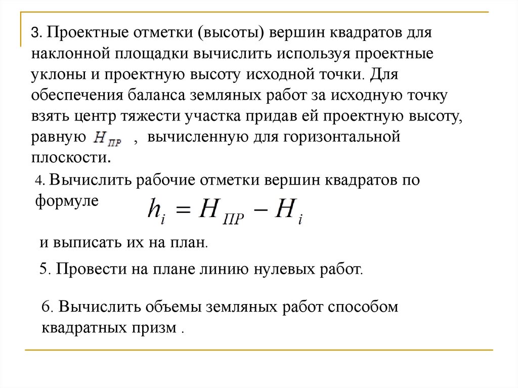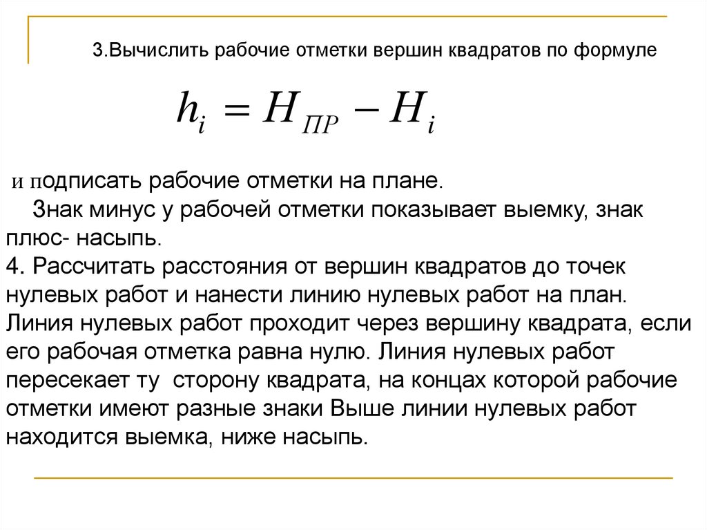 вершины рабочие отметки, как разность проектной высоты и высоты
