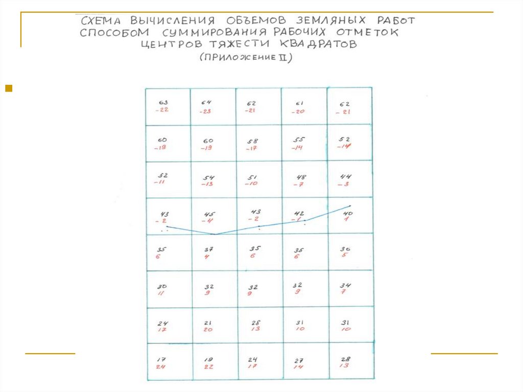 внутренних вершин квадратов. Затем провести линию нулевых работ.