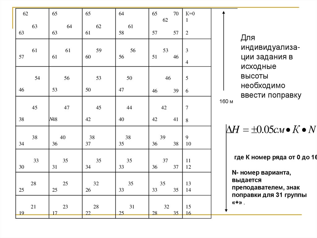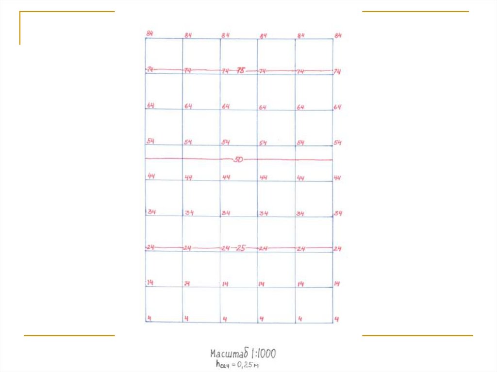 генплана интерполированием по горизонталям. Вычислить для каждой
