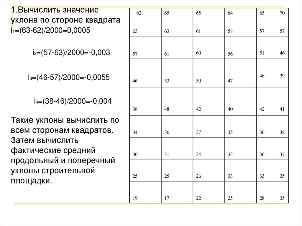 составит (103,67 - 105,27) / 120 = - 0,0133. Превышение на длину стороны