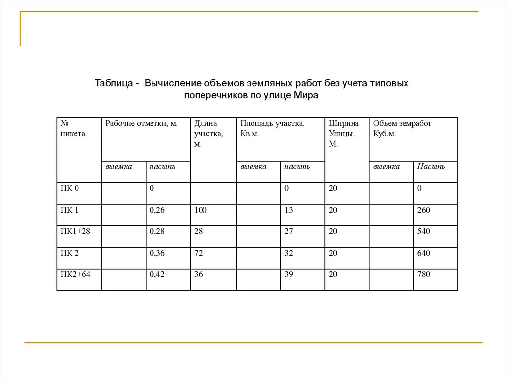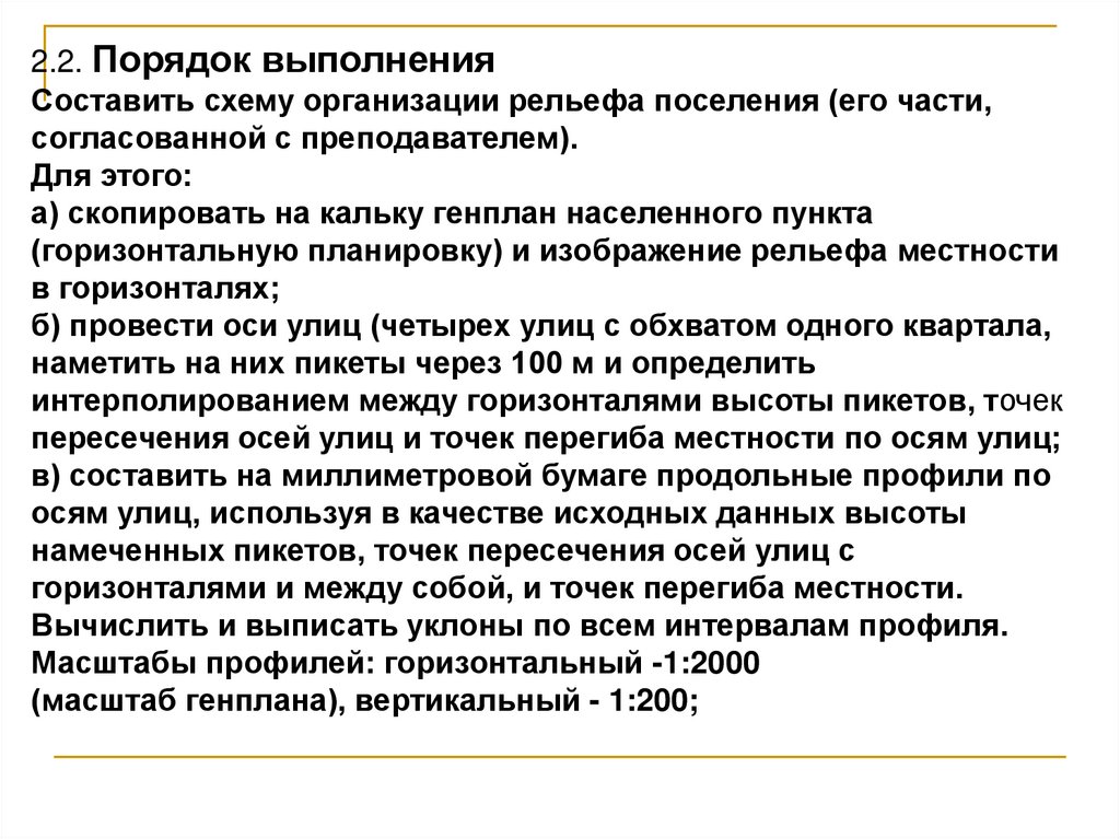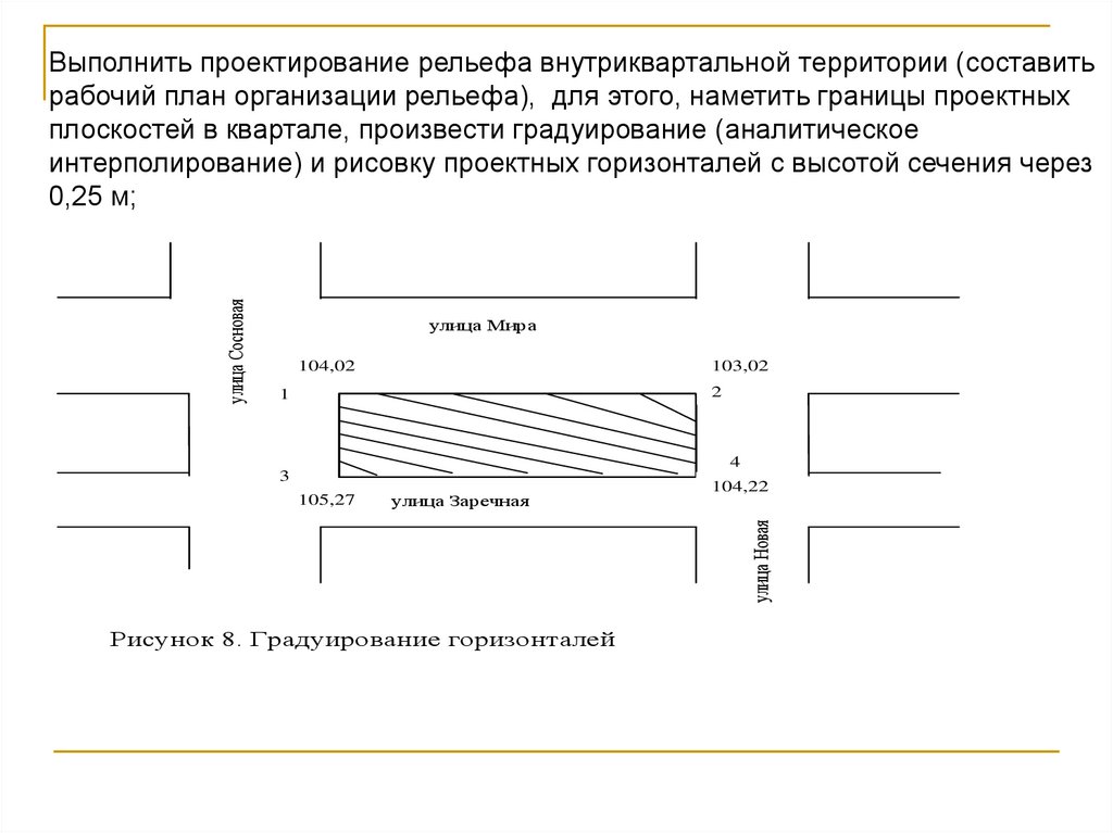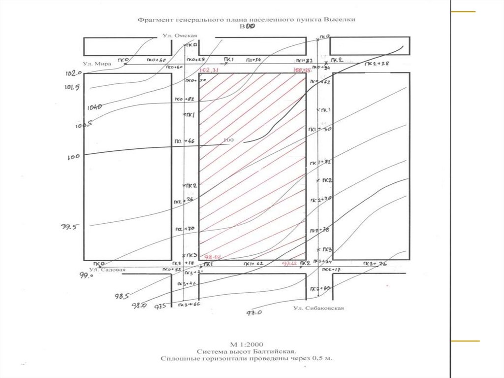 квартала до пересечения с проектными горизонталями. Длина квартала 200 м, ширина 120 м.