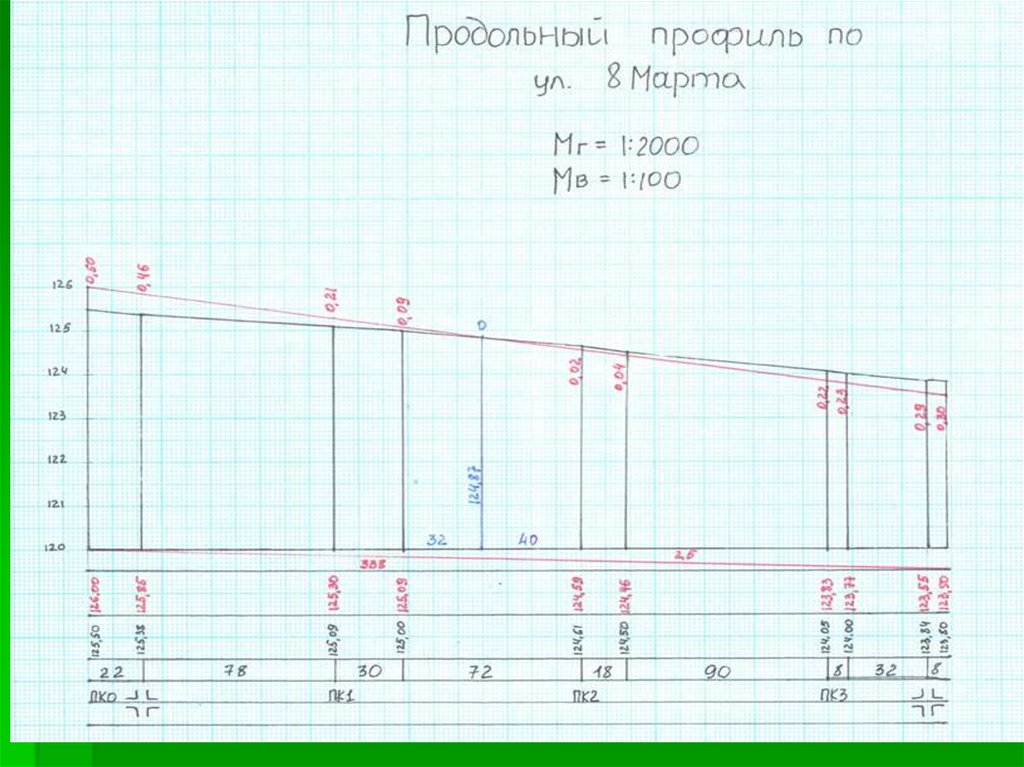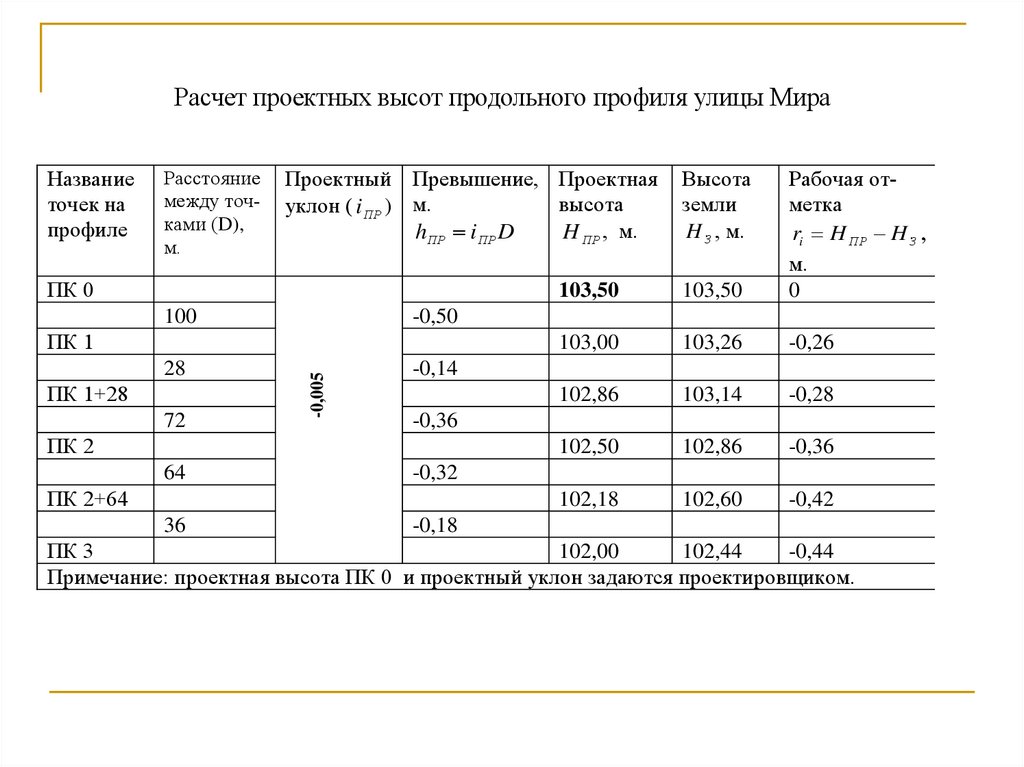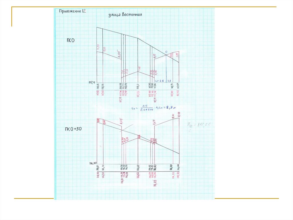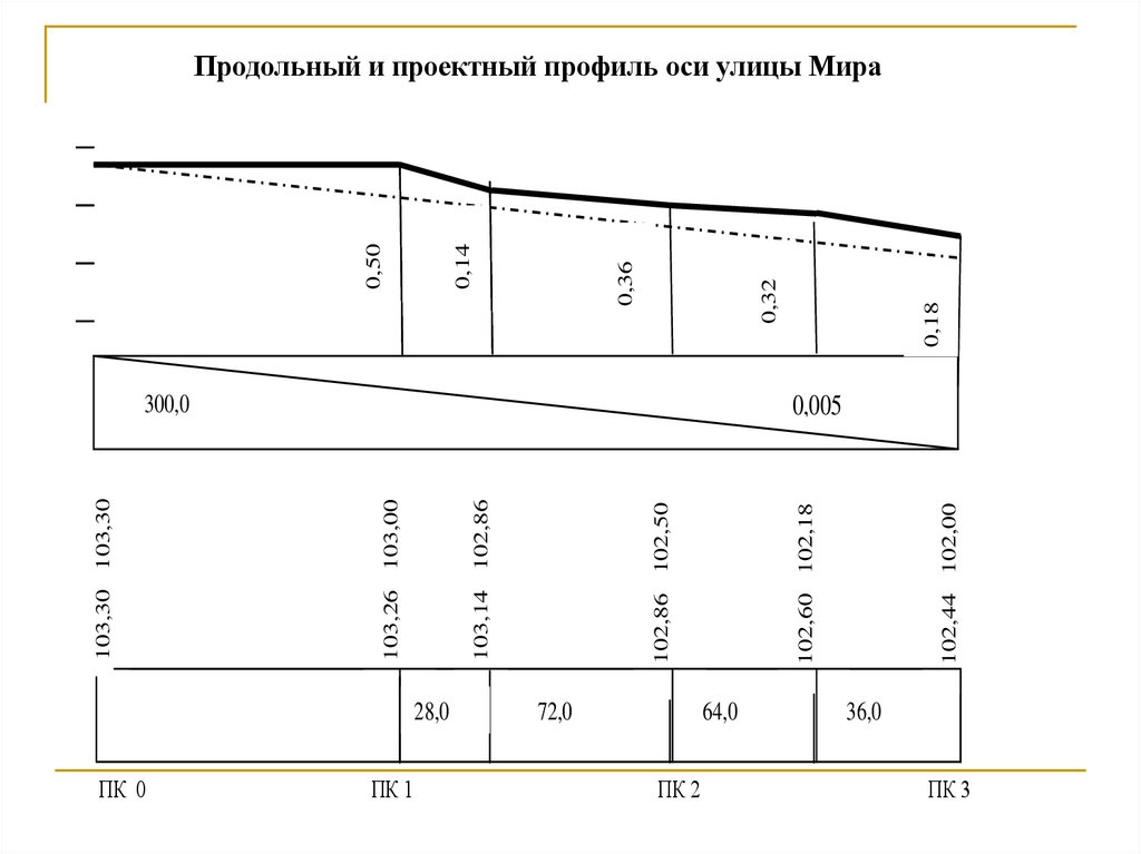 на рисунке 9) 105,27 и 103,67, тогда проектный уклон по этой стороне