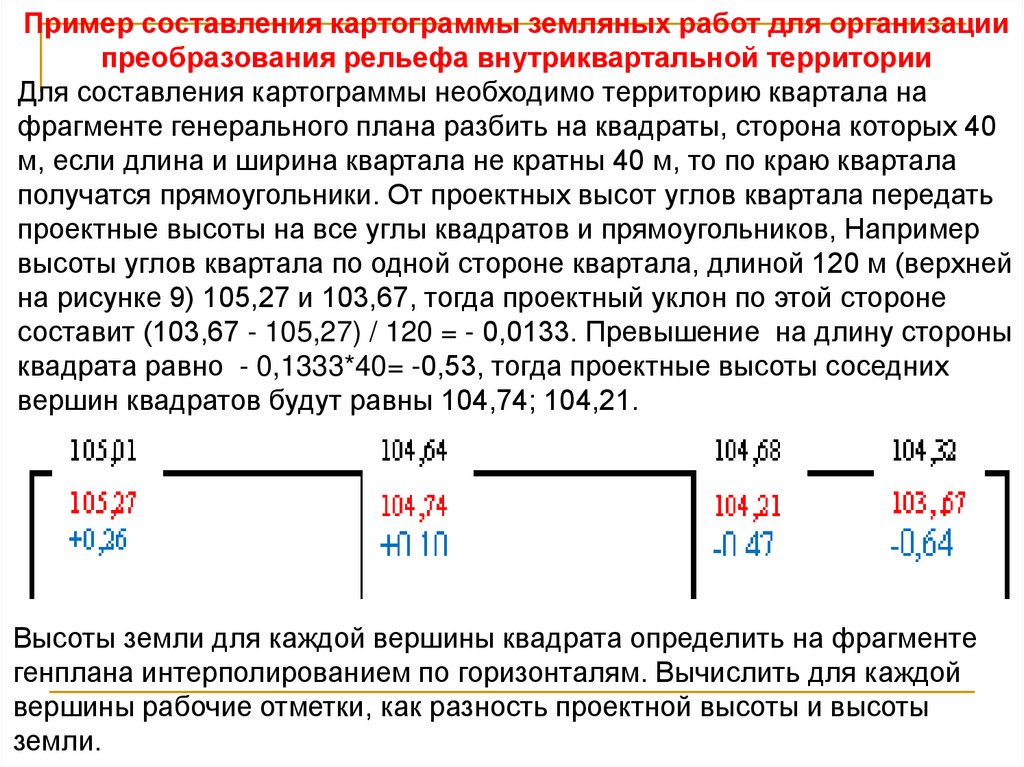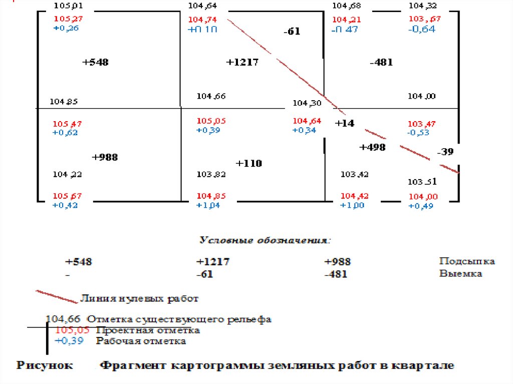 Пример составления картограммы земляных работ для организациипреобразования рельефа внутриквартальной территории