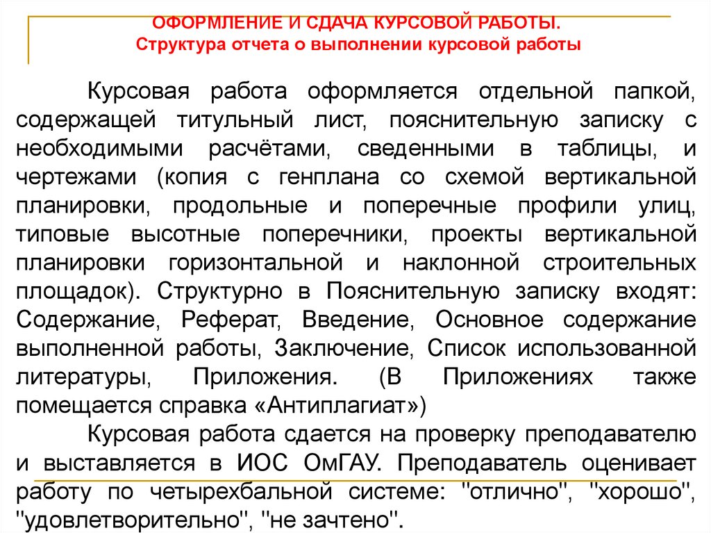 ОФОРМЛЕНИЕ И СДАЧА КУРСОВОЙ РАБОТЫ.Структура отчета о выполнении курсовой работы