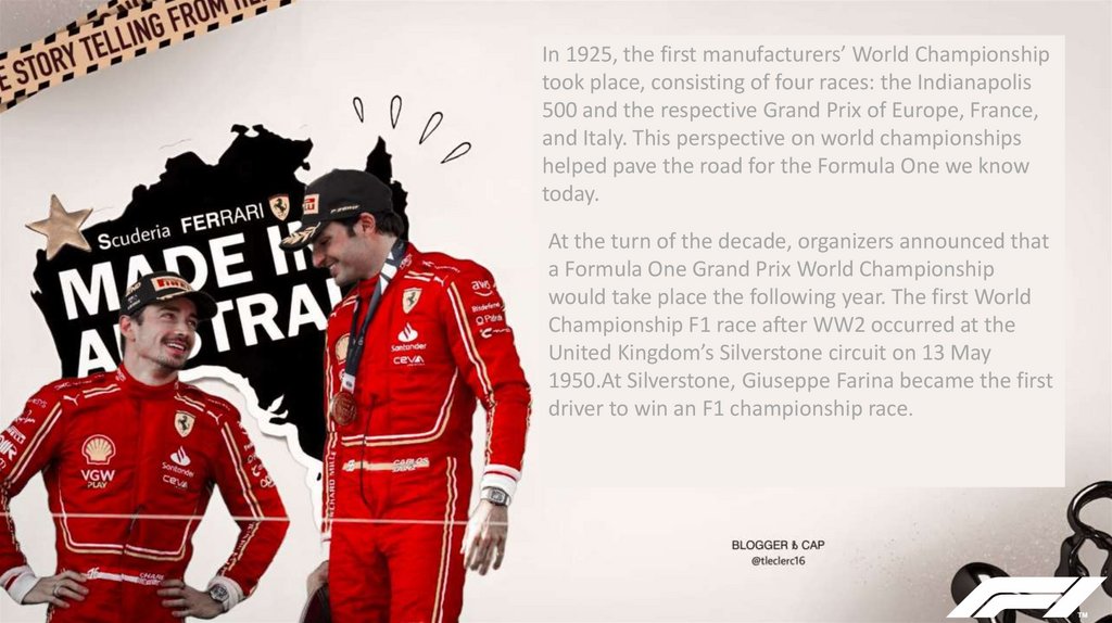 In 1925, the first manufacturers’ World Championshiptook place, consisting of four races: the Indianapolis