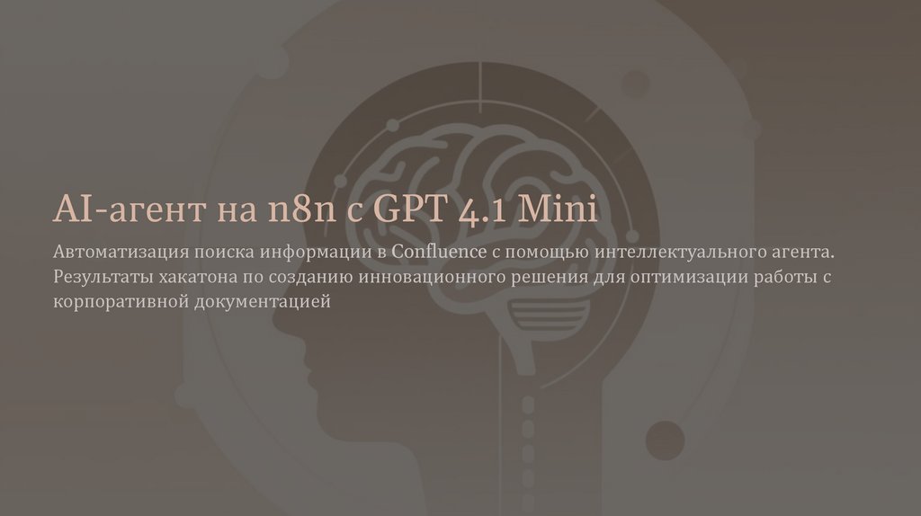 AI-агент на n8n с GPT 4.1 MiniАвтоматизация поиска информации в Confluence с помощью интеллектуального агента.