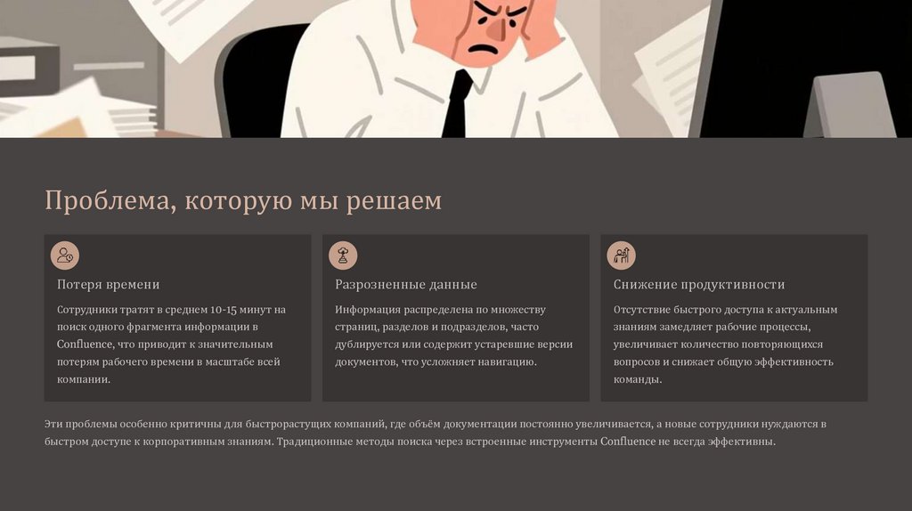 Эти проблемы особенно критичны для быстрорастущих компаний, где объём документации постоянно увеличивается, а новые сотрудники нуждаются в
