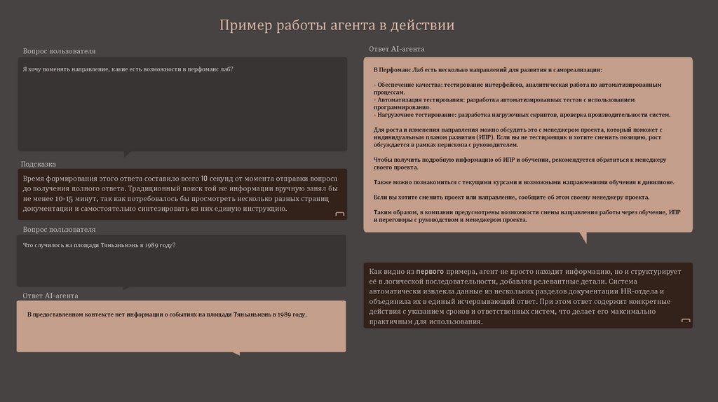 Как видно из первого примера, агент не просто находит информацию, но и структурирует