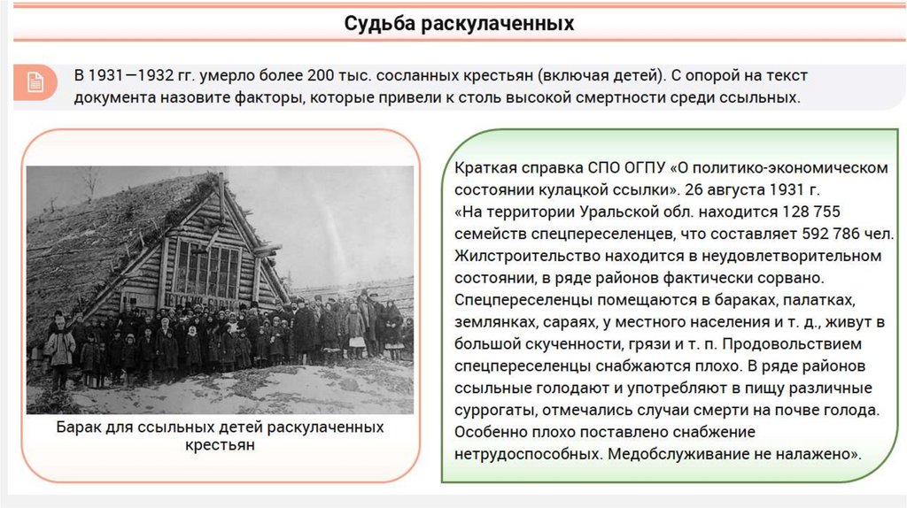 кулацкий актив, который подлежал заключению в лагеря; вторая —
